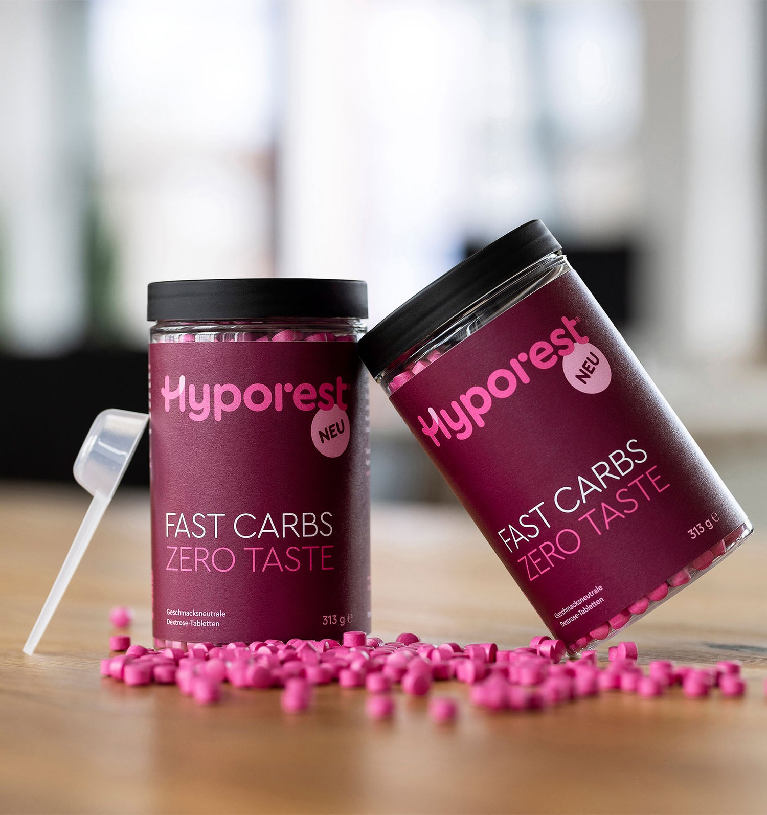 Im Gegensatz zu allen anderen Dextroseprodukten ist Hyporest geschmacksneutral und lässt sich zusätzlich präzise dosieren. Es bietet somit eine flexible und angenehme Möglichkeit, schnelle Kohlenhydrate zuzuführen, ohne den typischen süßen Geschmack.
